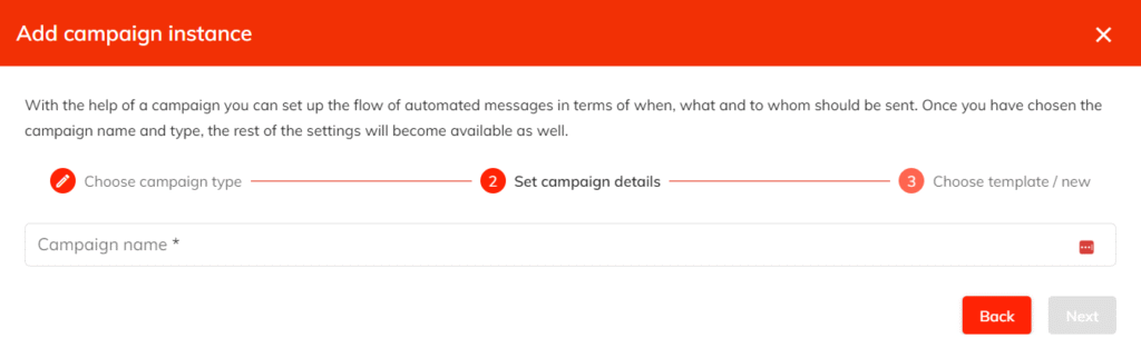 Once you’ve created the campaign you’re sent to a new page where you should fill in the details about the campaign you just created.