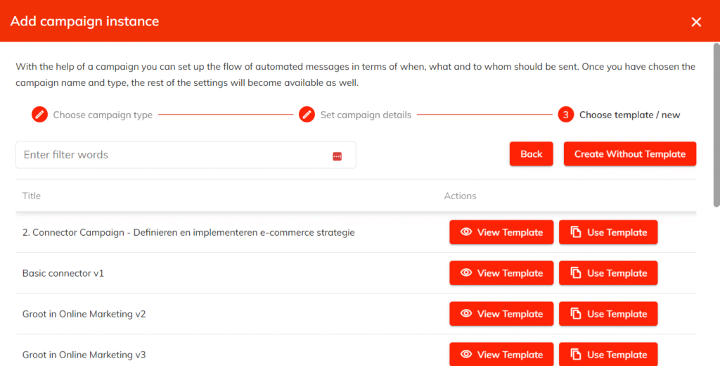 • The next screen will open, you can create a connector campaign with a template or create one yourself without a template.