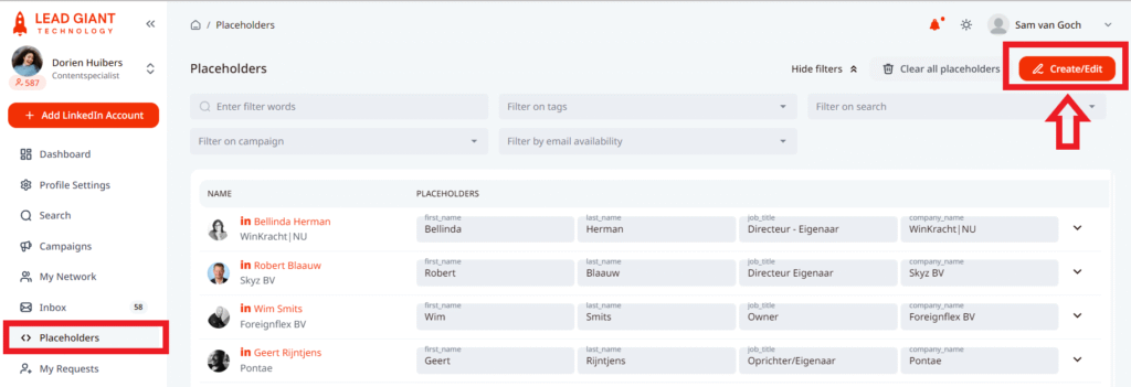 In order to create a new placeholder, you should go to the Placeholders section on LeadGiant and click on Edit Placeholder Names.