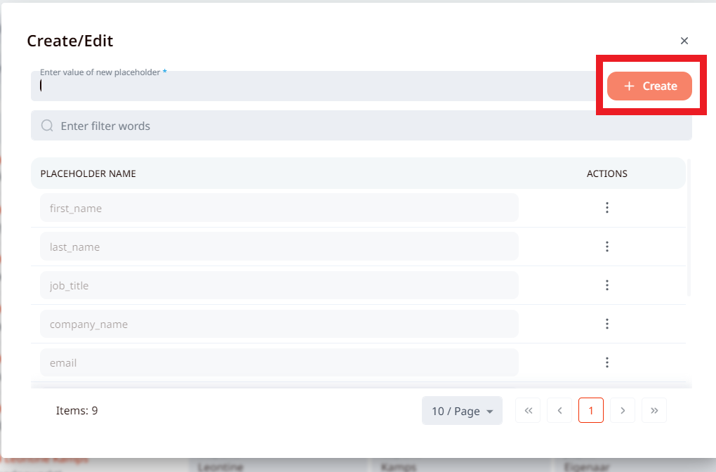 A pop-up window will appear where you should Enter the value of the new placeholder. Click on Create placeholder to add it as a column in your list.