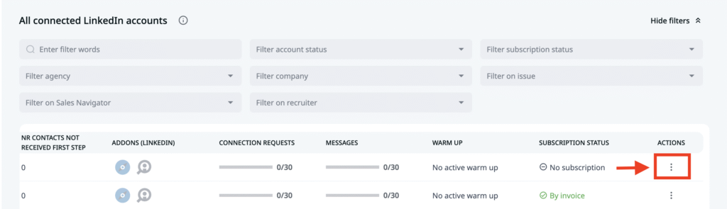 Once the subscription is removed, please follow the steps below to delete a LinkedIn account from LeadGiant: