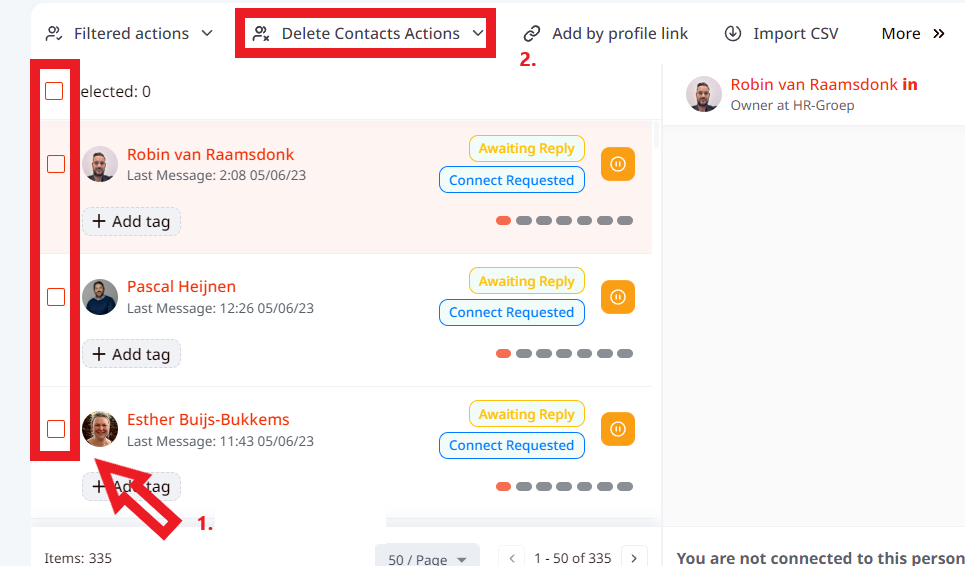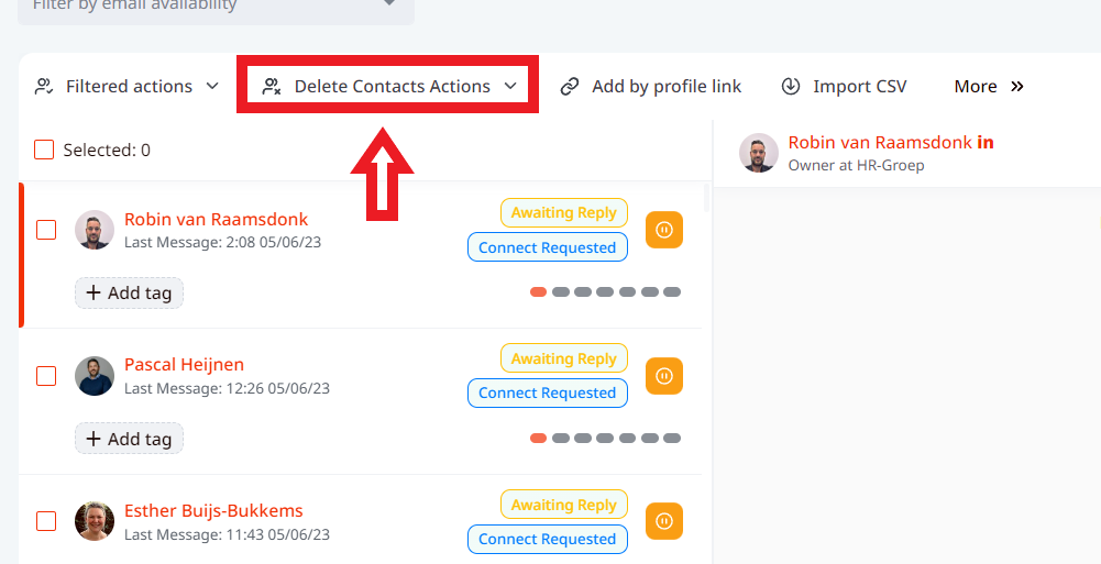 If you wish to delete some of the leads from the campaign you can either delete all leads, selected, or filtered leads from the campaign. In order to do this please follow the steps below.