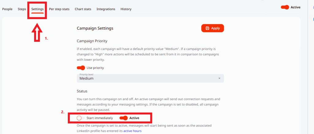 Keep in mind, that once the campaign is activated, if your account is in active times, it will take around 45 minutes for the system to schedule the tasks and for the campaign to start sending.