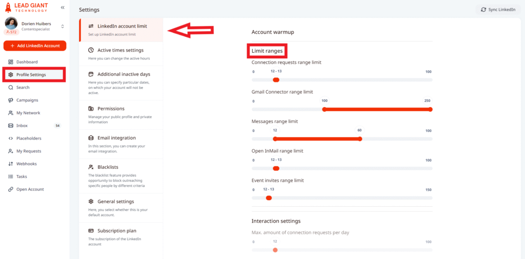 - Go to Profile Settings, then to LinkedIn account limit and there you will see an option to adjust Interaction Settings
