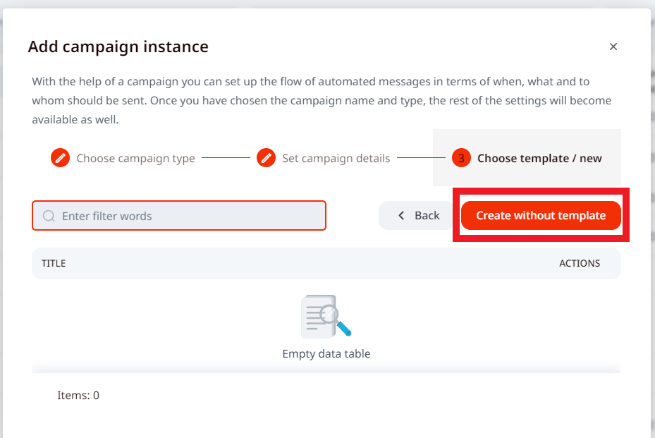 4. Choose a template for the campaign if you have any, if not, select Create without a template