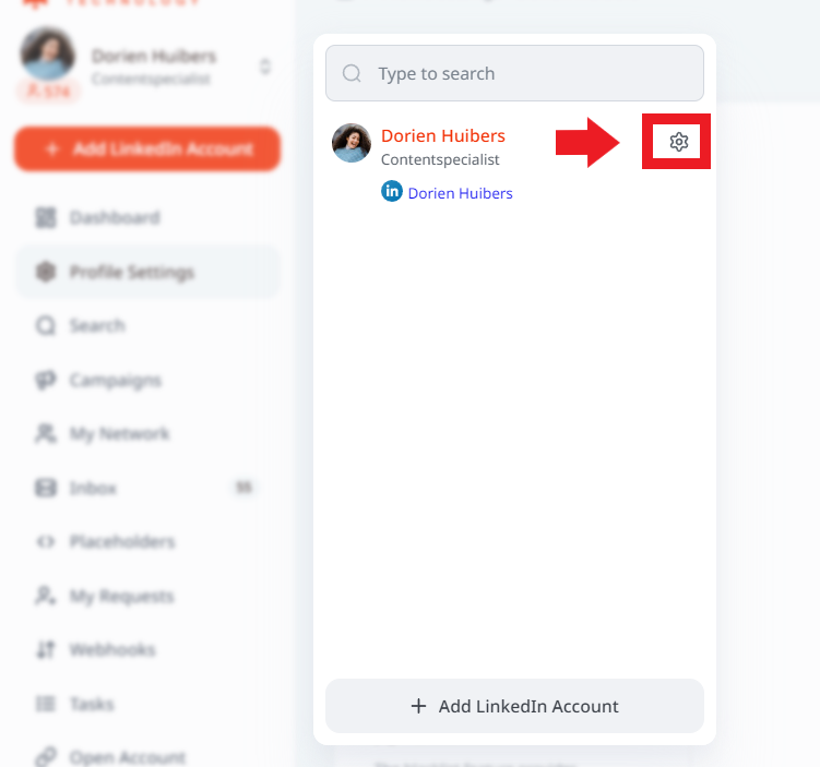 - Click on the icon next to the selected LinkedIn account