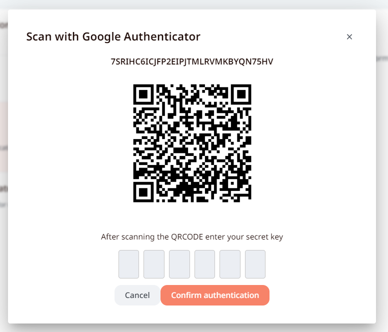 4. Scan the code with your Google authentication app on your phone, enter the pin received, and confirm authentication