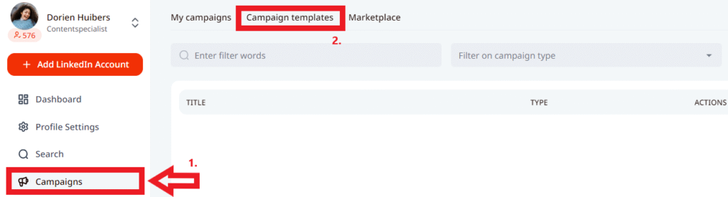 - Go to the Campaigns section on LeadGiant and press on the Campaign template tab