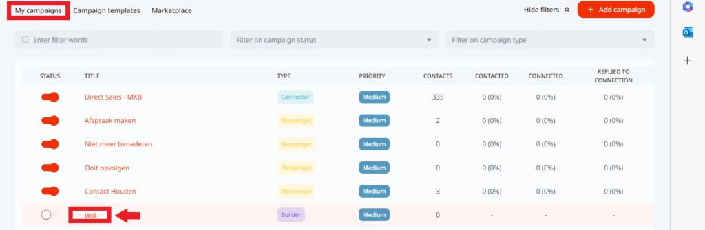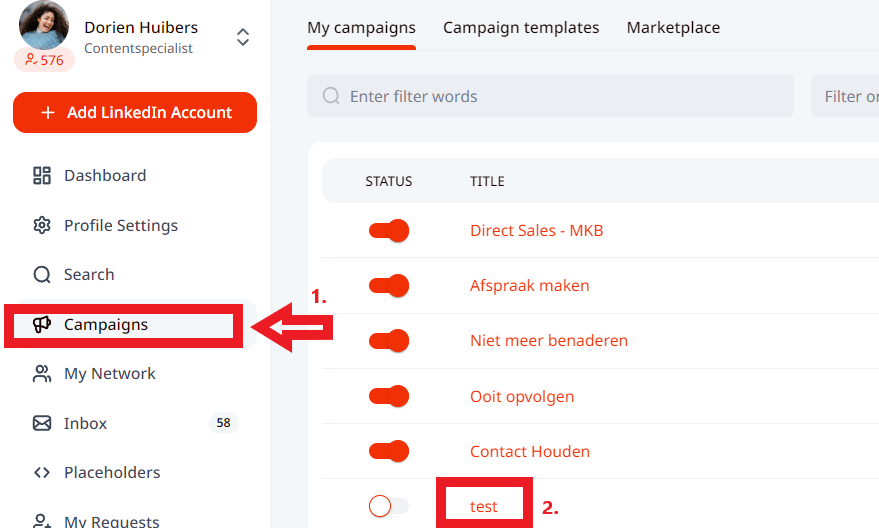 3. Once the template is selected, the campaign steps section will open up, where you can edit it and save the change. Once it’s done, you can start using it for outreach, add people to the campaign and activate it